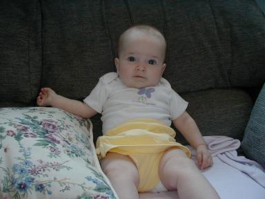 Without a lap to sit in, Sarah loves showing off how she can sit up